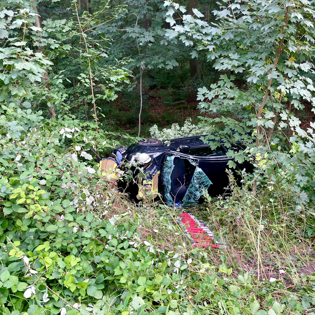 [si] Noch auf der Anfahrt zu dem vorangegangenen Kleinbrand wurde ein Verkehrsunfall im Bereich der Bergheimer Steige gemeldet. Kräfte der Wache 2 sowie weitere aus Weilimdorf wurden zum Paralleleinsatz alarmiert. Vor Ort bestätigte sich die Lage, dass ein Pkw ca. 10 Meter eine Böschung hinab stürzte. Glücklicherweise konnte sich der Fahrer noch vor dem Eintreffen der Feuerwehr selbst befreien. Durch die Feuerwehr wurde ein Zugang zum Fahrzeug geschaffen und die Batterie abgeklemmt. Daraufhin konnten die Weilimdorfer Einsatzkräfte aus dem Einsatz entlassen werden.