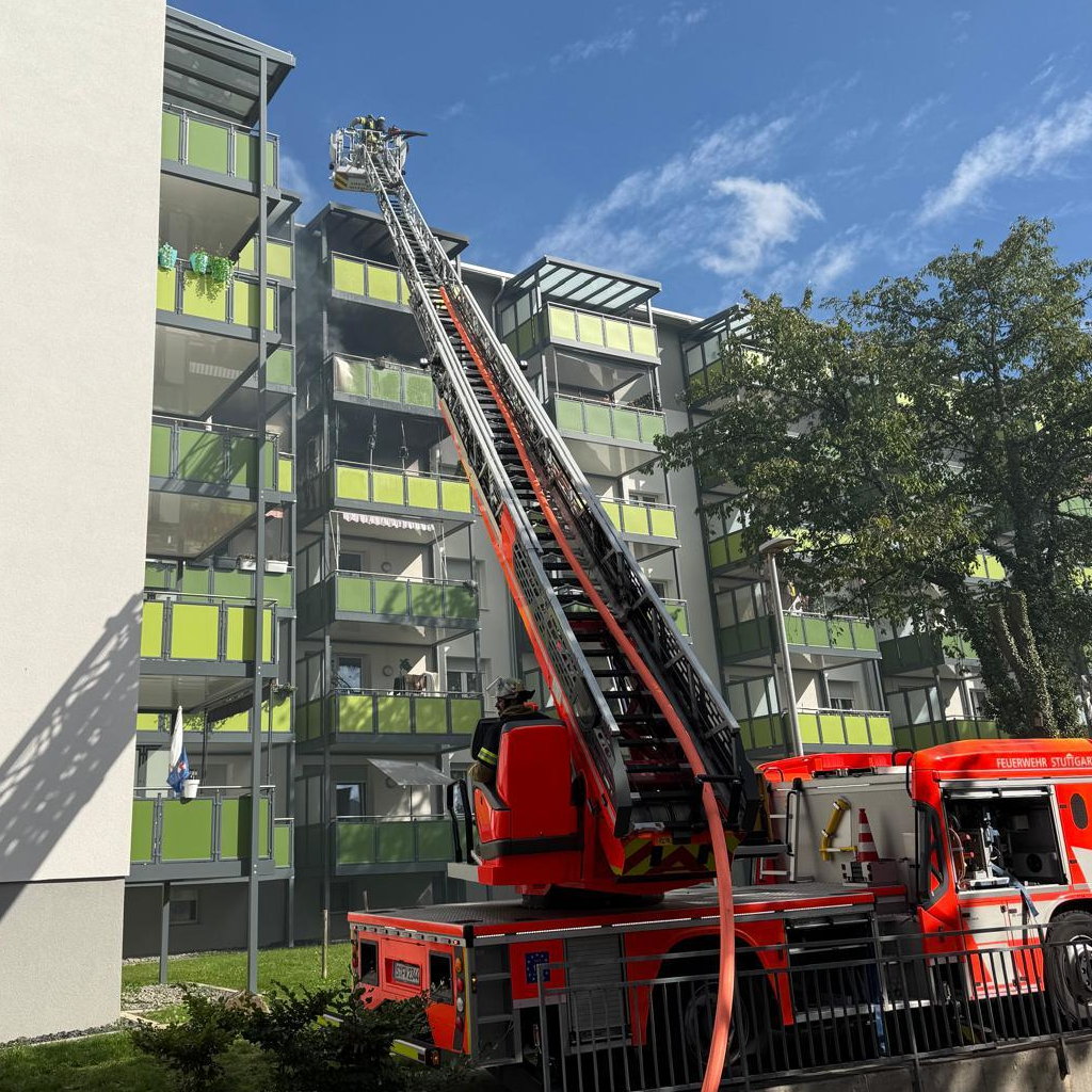 [si] Am Dienstagnachmittag wurde die Feuerwehr zu einem Brand in einem Mehrfamilienhaus in der Mittenfeldstraße alarmiert. Gegen 15:20 Uhr hatten Zeugen Feuer auf einem Balkon im 5. Obergeschoss entdeckt. Die Flammen griffen auf angrenzende Balkone über, zudem drang Rauch in mehrere Wohnungen ein.