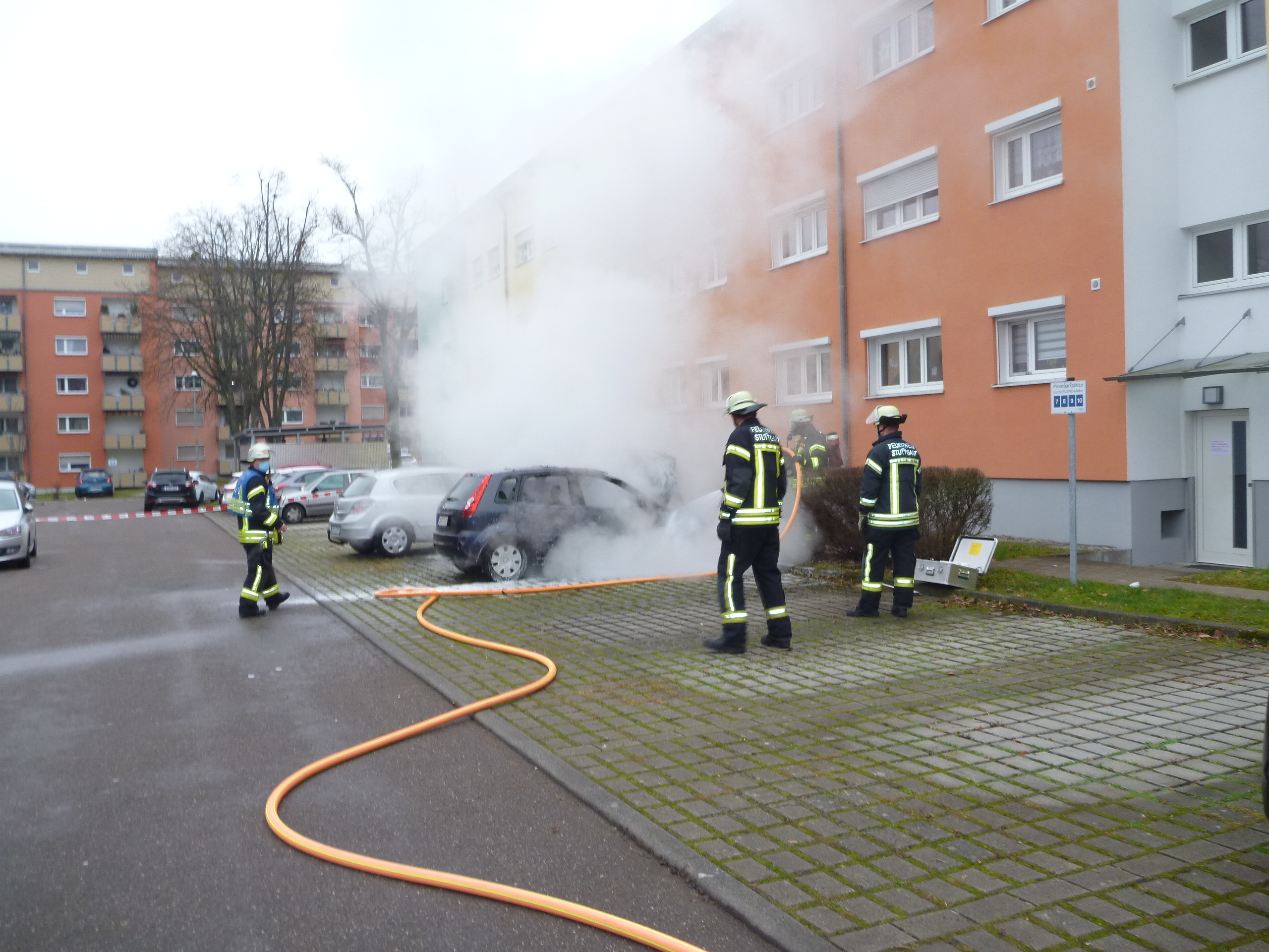 Ein auf einem privatem Abstellplatz geparkter PKW geriet in der Mittagszeit des 05. Januar 2021 aus ungeklärter Ursache in Brand und sorgte damit, für den ersten Einsatz der Freiwilligen Feurewehr Weilimdorf im Jahr 2021. - 05.01.2021