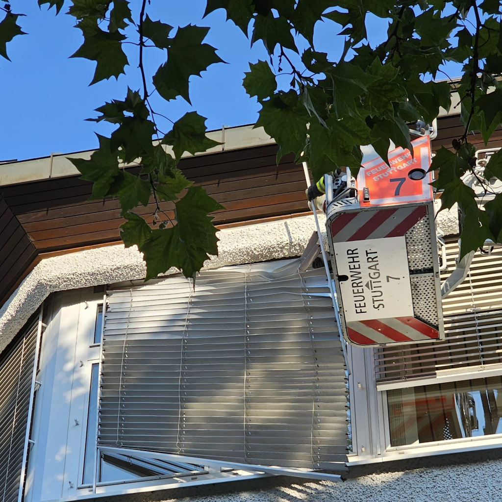 [si] Am Rathaus wurde der Feuerwehr eine Jalousie im zweiten OG gemeldet, welche abzustürzen drohte. Daraufhin wurde die Drehleiter aus Weilimdorf alarmiert. Vor Ort konnte durch die Besatzung die Jalousie inklusive des zugehörigen Kastens abmontiert und auf den Boden verbracht.