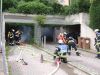 Dichte Rauschwaden breiteten sich am vergangenen Montag im Bereich einer Tiefgarage in der Oppenheimer Straße, in Stuttgart-Weilimdorf aus. Aus der Ferne ertönte bereits das Martinshorn. Kurz darauf traf dann auch schon ein Großaufgebot, bestehend aus der Freiwilligen Feuerwehr Weilimdorf und Botnang, sowie die Freiwillige Feuerwehr Abteilung Kommunikation ausgerüstet und angriffsbereit vor Ort ein. Gemeldet war ein brennender PKW in einer Tiefgarage, sowie mehrere verletzte und vermisste Personen, die zum Zeitpunkt des Brandes Wartungsarbeiten in der Tiefgarage durchgeführt haben. Umgehend machten sich insgesamt 6 Trupps unter Umluft unabhängigem Atemschutz über zwei außenliegende Zugänge auf den Weg zur Menschenrettung, sowie zur Brandbekämpfung. Die Trupps der FF Weilimdorf nutzen hierfür die Hauptzufahrt zur Tiefgarage, während die Trupps der FF Botnang, ebenfalls unter Atemschutz, die Brandbekämpfung und Menschenrettung über das von außen zugängliche Treppenhaus vornahmen. Zusätzlich dazu wurden die an die Tiefgarage angrenzenden Wohnhäuser von weiteren Einsatzkräften, ohne Atemschutz, auf Raucheintritt kontrolliert und die Treppenhäuser ebenfalls nach verletzten Personen abgesucht. Schnell konnten die insgesamt sechs verletzten Personen gerettet und bis zum Eintreffen der Schnell-Einsatz-Gruppe des DRK Giebels‘, welche ebenfalls an der Großübung mitwirkte, erstversorgt werden.