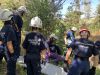 Nach kurzer Einweisung in die Weilimdorfer Löschfahrzeuge konnte fast schon gekonnt ein Löschangriff vorgetragen, und eine Personenrettung aus dem nahen Bachbett beübt werden.
